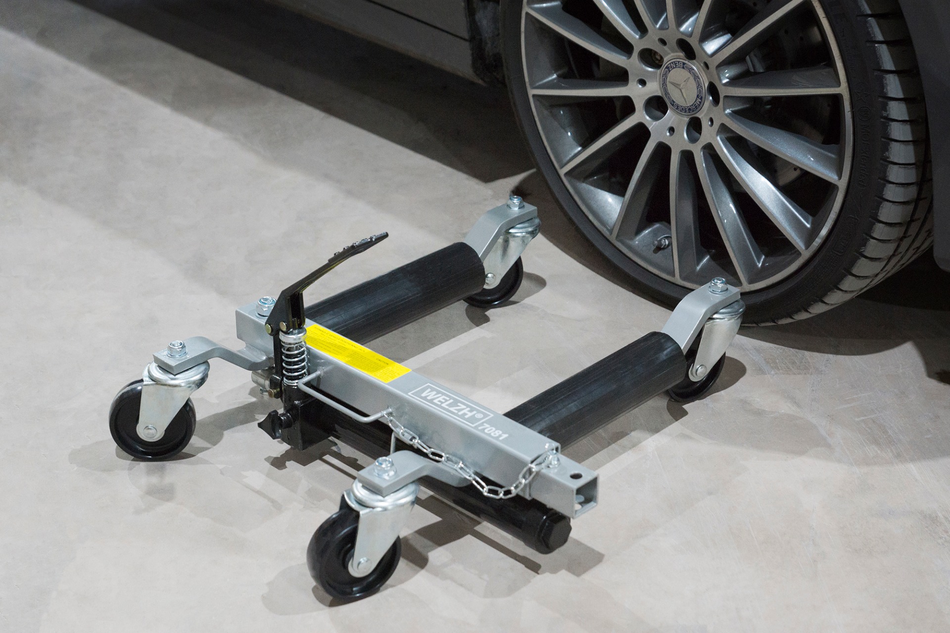 O design ergonómico e resistente garante segurança ao operador, permitindo levantar e deslocar veículos com máxima estabilidade e mínimo esforço físico.