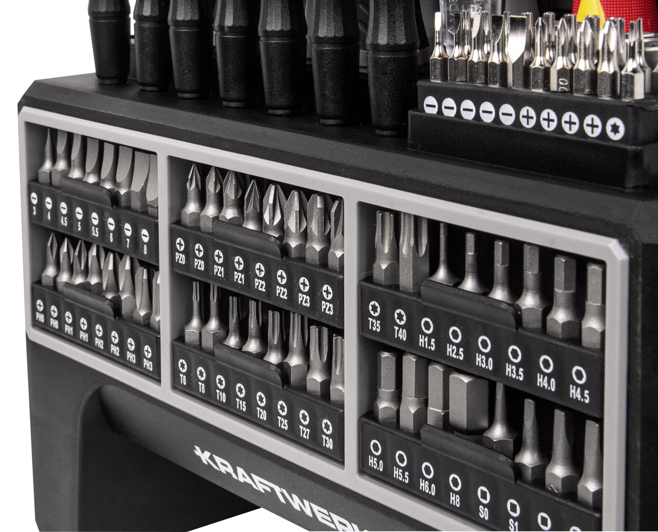 Inclui bits, chaves de parafusos, chaves de caixa e muito mais.