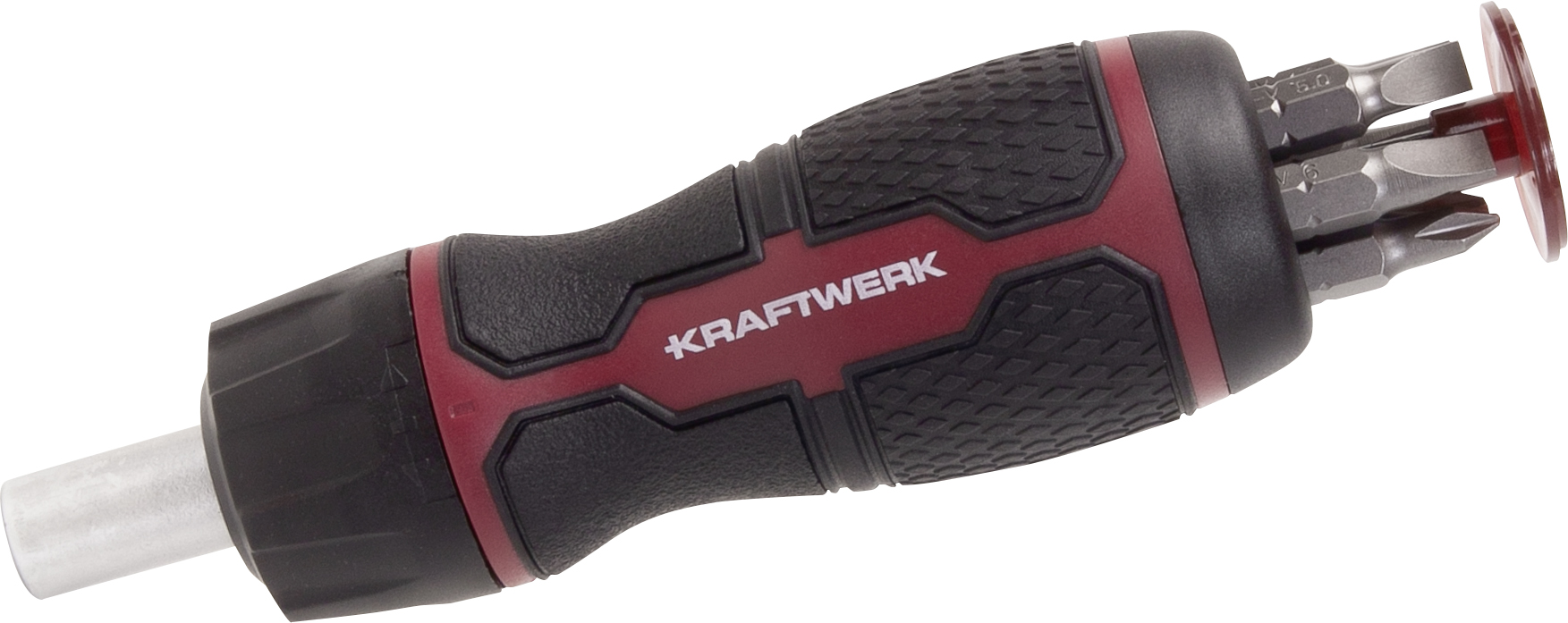 – Conjunto de bits 1/4″ 6,35 × 25 mm integrados na pega, 6 pçs.