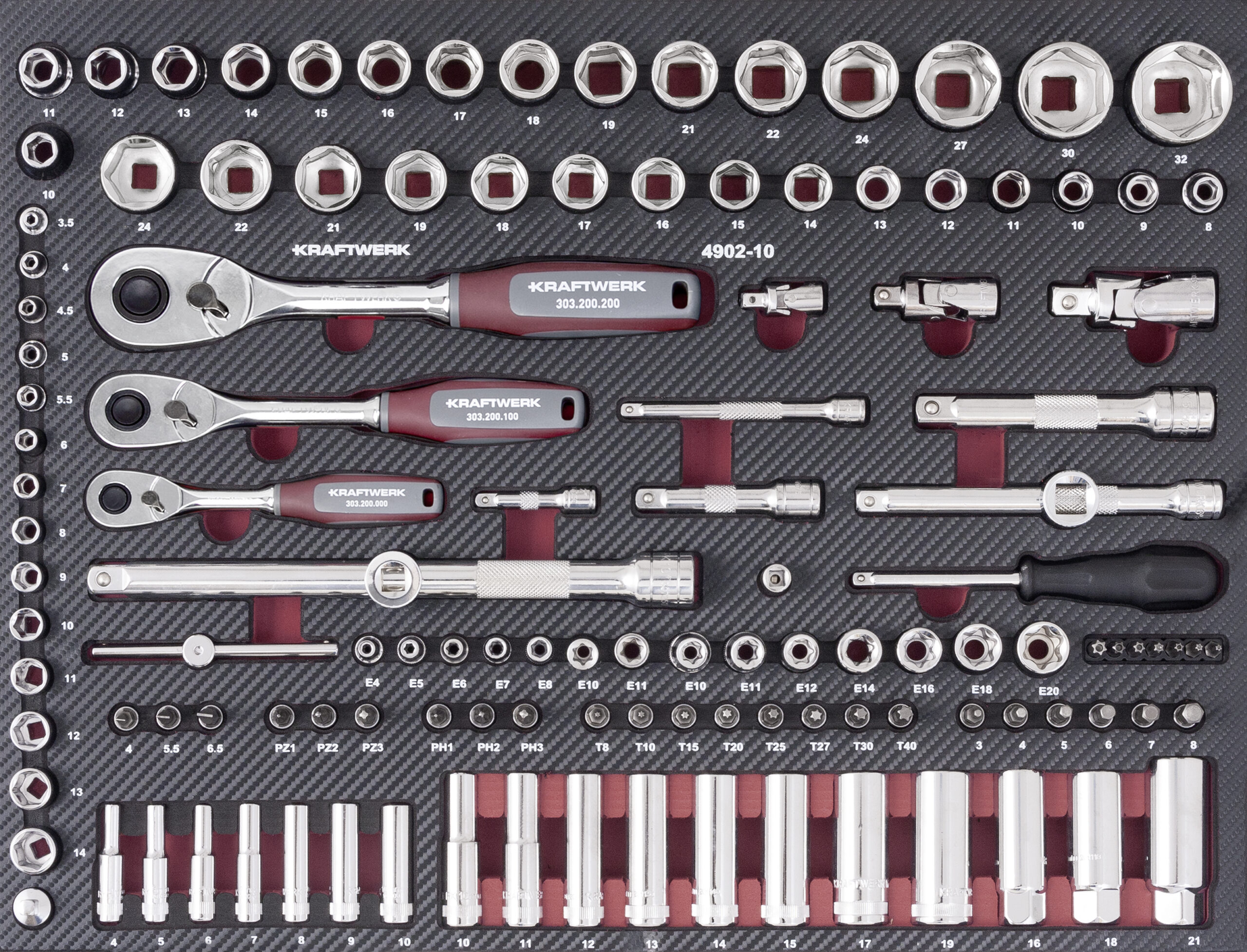 – Chaves de caixa c/ bits, Torx: T8 – T10 – T15 – T20 – T25 – T27 – T30 – T40